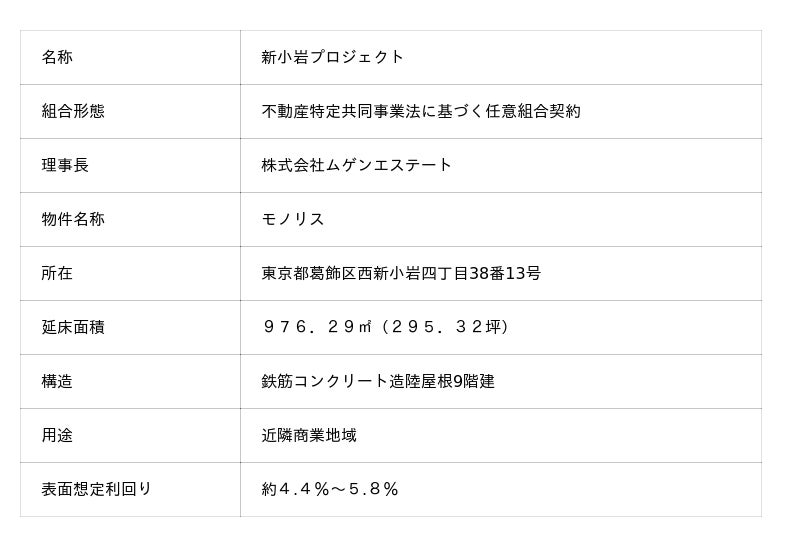■「ブドーさん 備える不動産小口投資」新小岩プロジェクト任意組合の概要