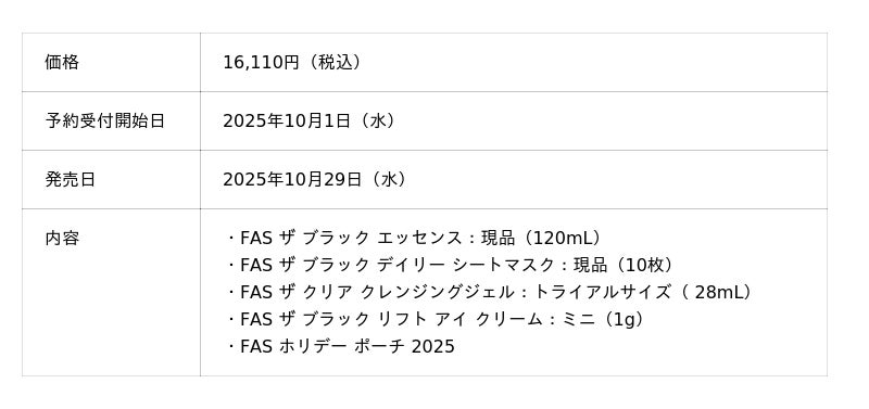 株式会社シロク(本社:東京都渋谷区、代表取締役社長:飯塚勇太)が展開する発酵エイジングケア*¹ブランド「FAS(ファス)」は、3種のホリデー限定コフレを発売いたします。