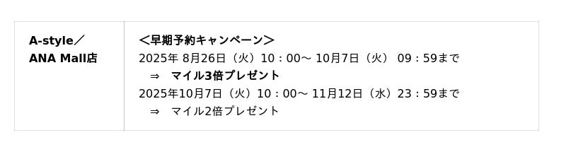 ANAショッピングA-style、ANA Mall店、@SKYにて8月26日より予約販売開始