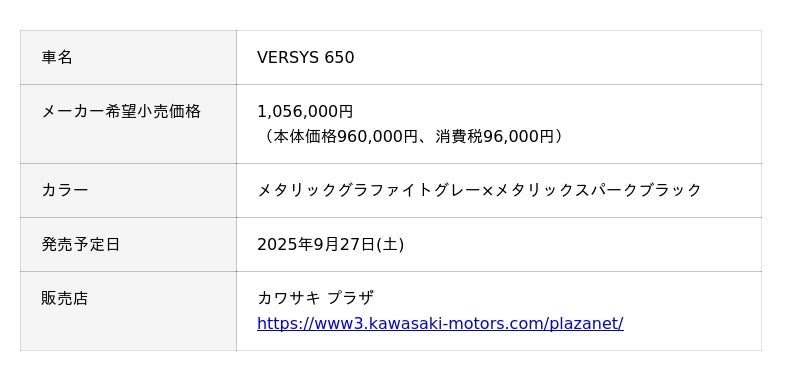 株式会社カワサキモータースジャパン(本社:兵庫県明石市、代表取締役社長:佐伯 健児)は、「VULCAN S」のカラー&グラフィックを変更し、2025年9月27日(土)に発売いたします。