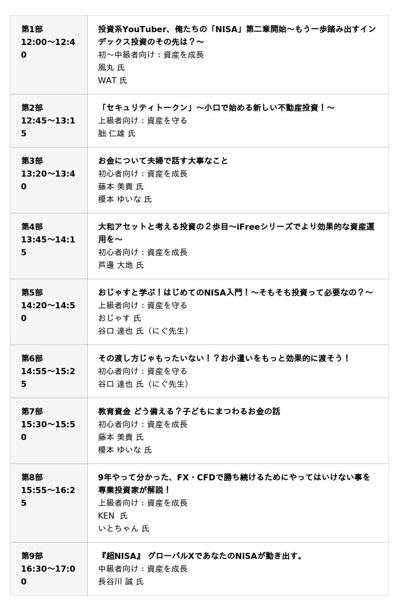 2025年9月7日(日)に開催したハイブリッド型イベント「資産運用フェス2025~NISAやるなら!SBI証券~」では4,000名超のお客さまにご来場いただきました。「資産運用フェス」に続き、今年は大規模イベントを大阪でも開催します。これから資産運用をはじめる方から、もっと投資の幅を広げたい方まで、お客さまのレベルに応じた多様なセミナーやブースなどを取り揃えています。