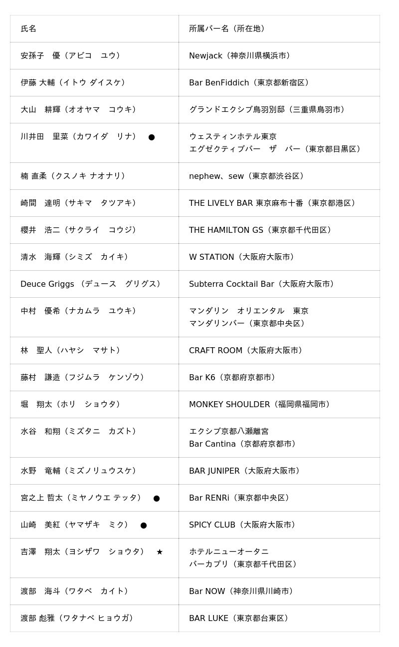 応募資格:バー、ホテル、レストラン等に勤務するバーテンダー様、またはそれに準じる方