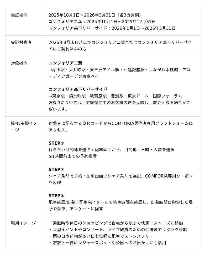 「COMFORIA居住者向けモビリティサービス」実証実験概要