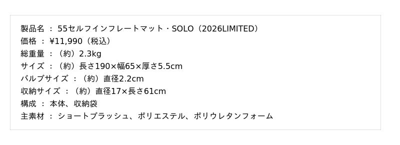 【 55セルフインフレートマット・SOLO(2026LIMITED)】https://www.logos.ne.jp/products/info/11496