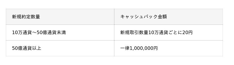 ※各通貨ペアのキャッシュバックの上限額は100万円となります。