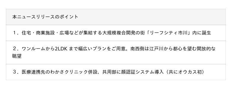 またオウカスが誕生する「リーフシティ市川」は、住宅・商業施設・広場などが集結する大規模複合開発の街であり、京葉ガスとともに、エリア価値の向上と地域課題の解決に寄与することを目指しています。