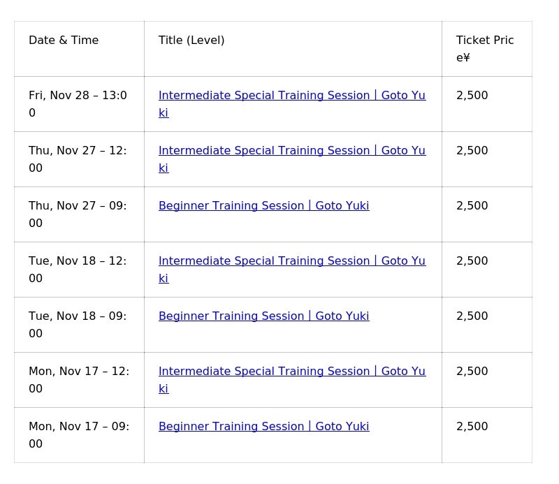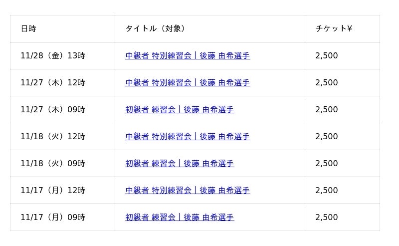 【リリース概要|後藤 由希 選手による 初級・中級 練習会】