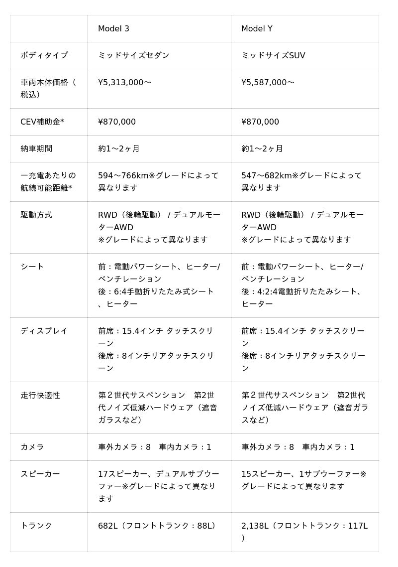 ※Model YまたはModel 3の新車を購入すると、国のCEV補助金が適用されます。また、各自治体独自に補助金を設定している場合があります。 詳しくはお住いの地方自治体ホームページをご確認ください。補助金の申請条件、および予算額の最新情報については事前にご確認ください。※一充電走行距離は、WLTCモード(国土交通省審査値)です。また、実際の航続距離は速度、気象条件、高度変化といった要素によって異なります。