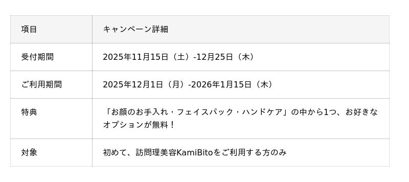 全国で訪問理美容を展開するKamiBitoが、年末限定で「カット+選べる無料3オプション」の特別企画を実施します。2025年、最後のチャンスをぜひお見逃しなく!