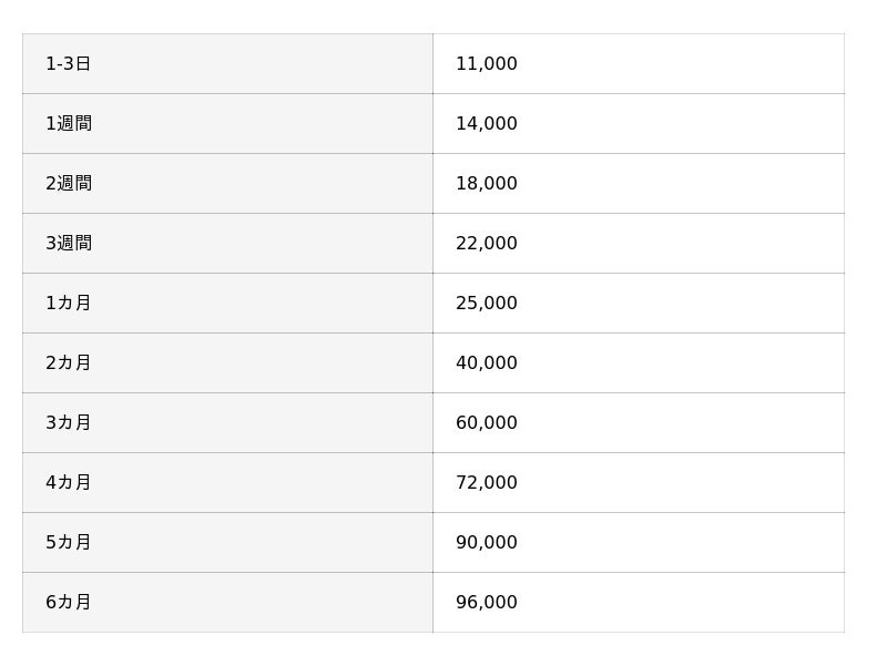 1台あたりのレンタル料金(税抜)