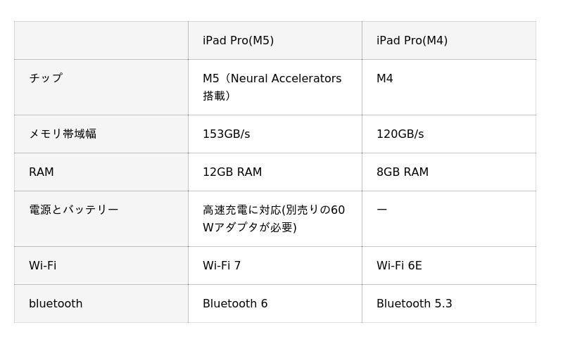 iPad Pro(M4)との違い