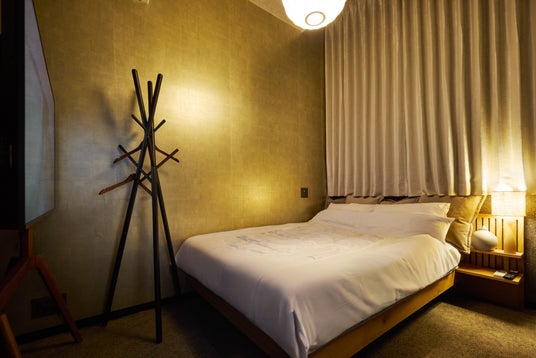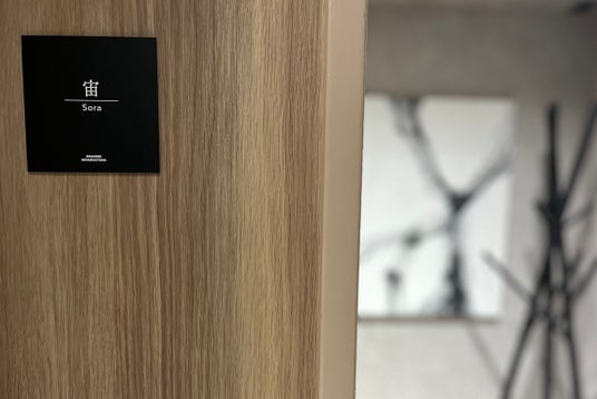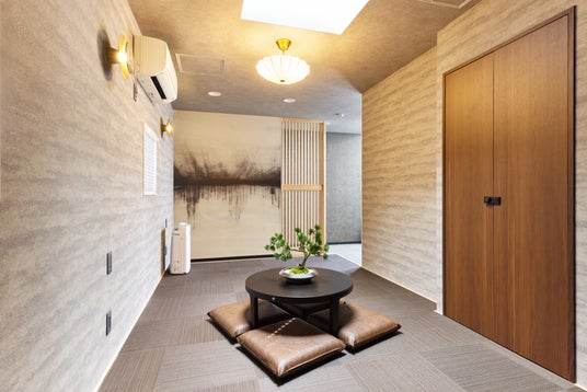 施設内のインテリアは、日本の伝統的な美意識と現代的な快適さを融合させた「和モダン」デザインを採用。落ち着いた色調と上質な素材、そして障子をモチーフにした格子や墨絵を思わせる大胆なアートワークが、唯一無二の滞在体験を演出します。建物全体がアート作品のようにデザインされており、異文化のゲストに深い安らぎとインスピレーションを与えます。