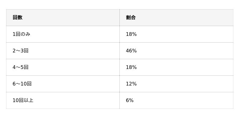 - 施術回数は「2~3回」が最多で全体の46%を占めた
