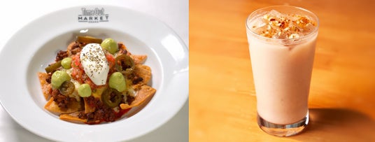 自家製チョリソーとチーズを重ね、アボカドサルサとサワークリームで仕上げたナチョス。香ばしく食べ応えのある一品。