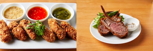 スパイスの衣で揚げたラムチョップは、エキゾティックな味わいと、レアな火入れが絶妙!そのまま食べても、カレーのトッピングにもオススメ。マサラ塩を添えて。