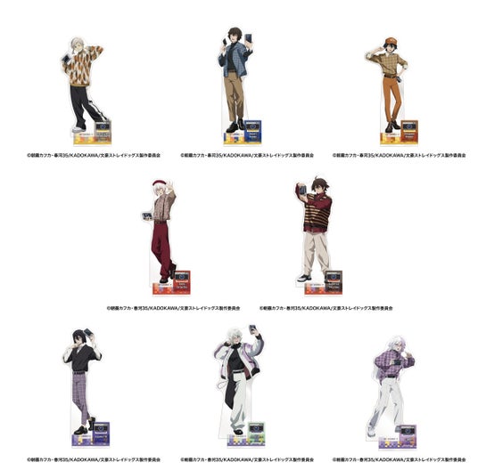 今回、販売される商品には、「撮影会」をテーマにした中島敦や太宰治の新規描き下ろしイラストを使用! 「『文豪ストレイドッグス』撮影会フェア~TAKE 1~(2025年8月9日~8月31日開催)」に登場したキャラクター達の新しいポージングのイラストが楽しめます。新商品には、「アクリルスタンド」や「キャラバッジコレクション」、「クリアポスター」など、多数のアイテムがラインナップされています。