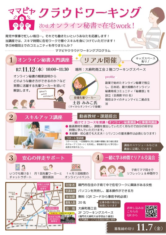 【徳島県 鳴門市役所】「ママビヤ」クラウドワーキング オンライン秘書を目指すママのための「学び舎」がスタートしました!