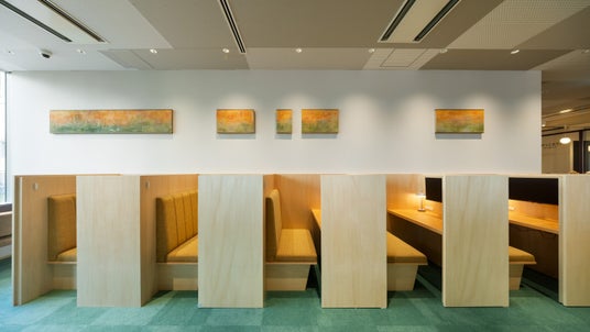(1)SHARE LOUNGEとスターバックスの空間や体験がシームレスにつながったLOUNGE & CAFESHARE LOUNGEの持つラウンジのような居心地の良さと、知的好奇心を刺激する本による提案性、そしてオフィスの機能性を兼ね備えた空間価値と、「スターバックス」が提供する一杯を通じた最高のコーヒー体験。その2つの空間や体験がシームレスにつながり、両者のお客さまが自由に使える融合された空間を備えています。これよってお客さまは目的や気分によって空間を使い分けることができ、「SHARE LOUNGE」を利用するお客さまと「スターバックス」を利用するお客さまが同じ時間を共有することもできます。
