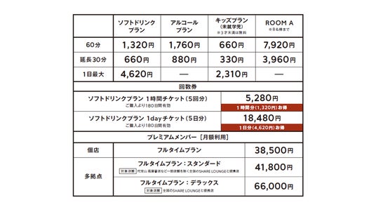 ■SHARE LOUNGE キラリナ京王吉祥寺 料金表
