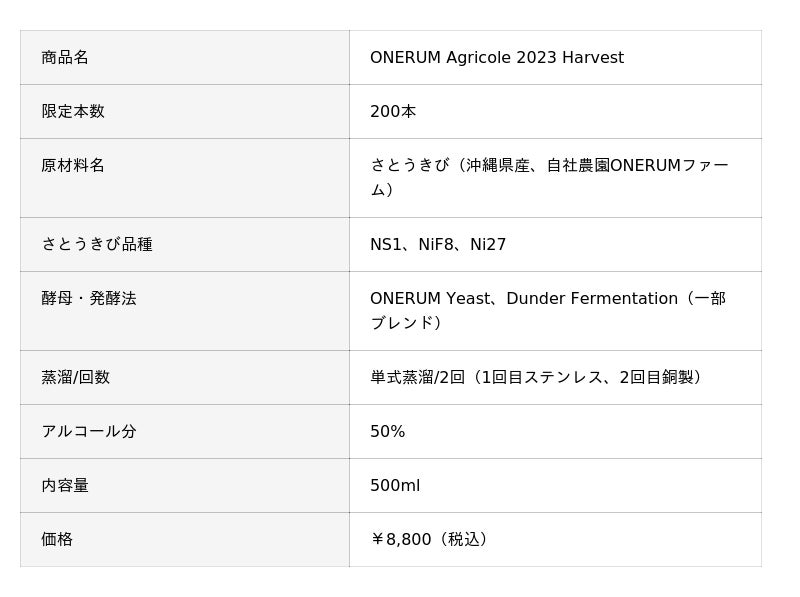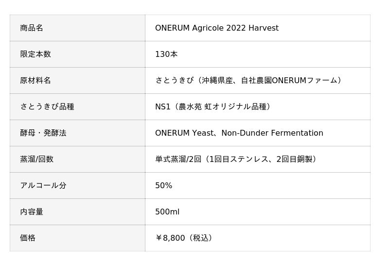 瑞穂酒造株式会社(沖縄県那覇市、代表取締役玉那覇美佐子)および、酒類の企画・販売を主な事業とする株式会社OneSpirit(沖縄県那覇市、代表取締役仲里彬)は、2021年より自社のさとうきび農園「ONERUMファーム」において栽培研究から取り組んできたアグリコールラムを、2025年11月25日(火)にリリースいたします。(※沖縄県内のイベント等にて一部先行販売済み)