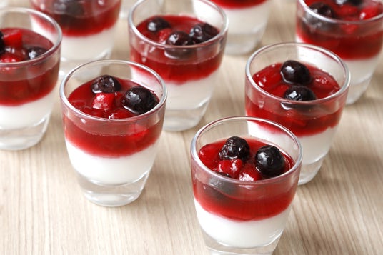 ベリーヨーグルトヨーグルトムースにいちごとブルーベリーのソースを合わせました。果肉入りの甘酸っぱいベリーのソースと、爽やかなヨーグルトの風味が相性抜群。