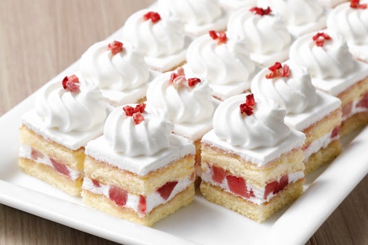 苺のショートケーキケーキの定番、いちごのショートケーキをプレミアムカルビ風にアレンジ。生クリームと合わせたジェノワーズの中には甘酸っぱいいちごがたっぷり。