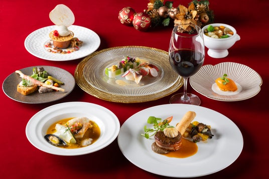 夜は、海の幸と冬葱のプレス、フォワグラと冬野菜のポトフ、近海ソイのポワレ、十勝大地牛フィレ肉のグリエなど、季節の恵みを堪能できるフルコースをご用意。会場ではピアノ生演奏も実施し、クリスマスの夜にふさわしい上質な時間を演出します。