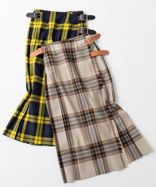 ベルトで留めて着る、時代に左右されないクラシカルなキルトスカートを豊富なウエストサイズ展開でご紹介します。