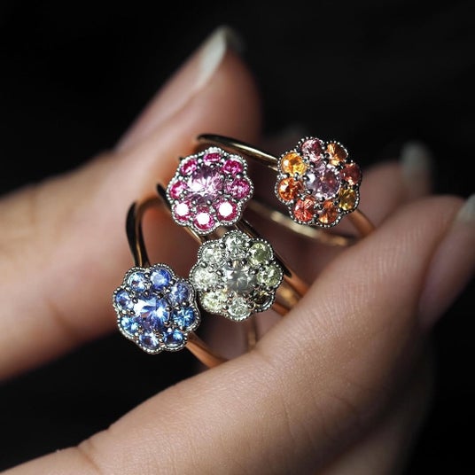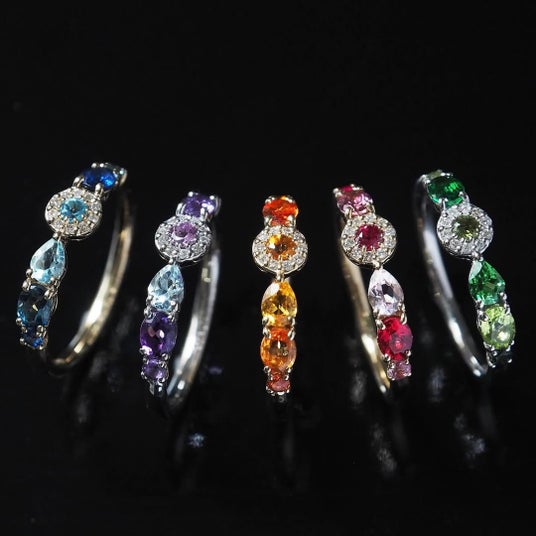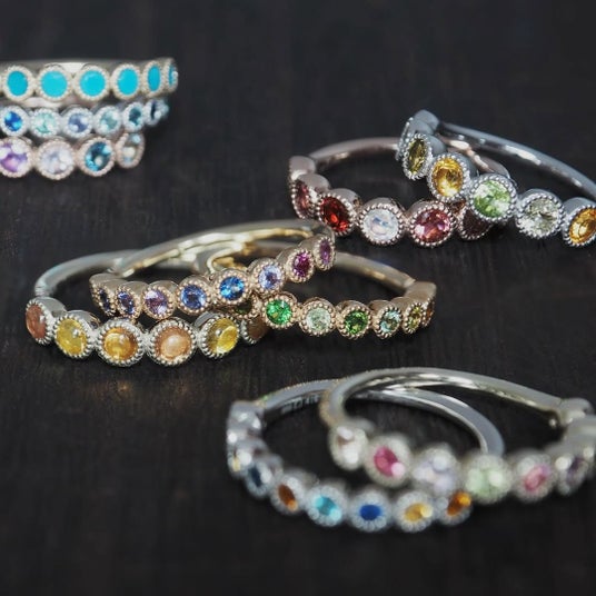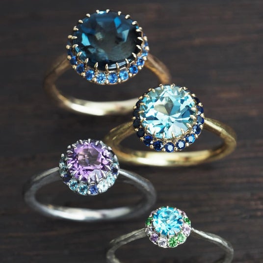 ブルージルコンやオレンジサファイア、レッドスピネルなど、鮮やかな色石を贅沢に揃えたラインアップ。冬の光に映える透明感と色彩の輝きをお楽しみいただけます。