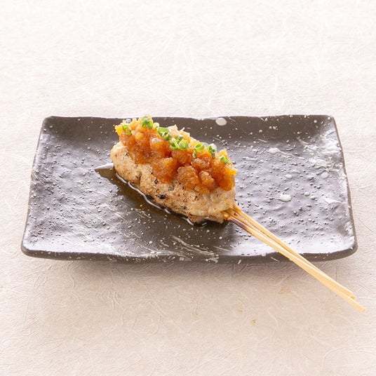 ぱたぱた家名物の鶏つくね串に、大根おろしとポン酢をトッピングいたしました。