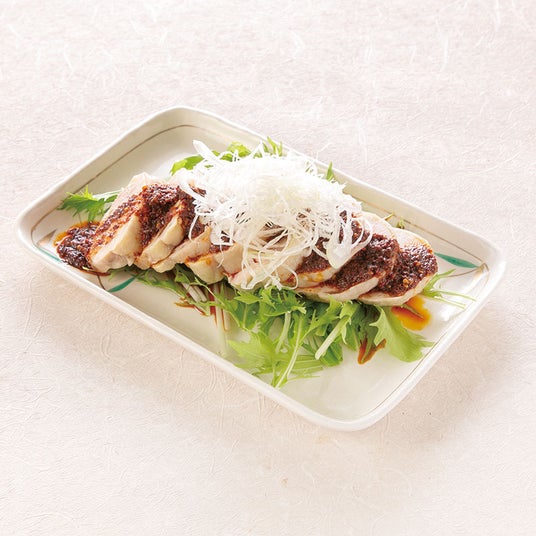 店仕込みの蒸し鶏に特製の麻辣油(マーラーユ)をかけました。