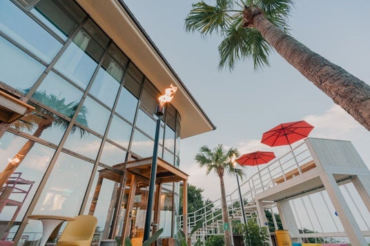 施設1階はハワイテイストのこだわりのメニューを楽しむカフェレストラン「+Lei Kitchen-プラスレイ キッチン-」。