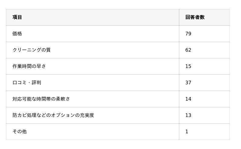 今後エアコンクリーニングを利用する際に重視するポイントを教えてください。(複数回答可能)