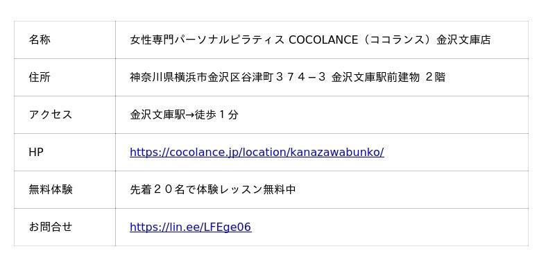 【金沢文庫駅 徒歩1分】女性専門パーソナルピラティス COCOLANCE(ココランス)金沢文庫店が2026年1月19日にオープン