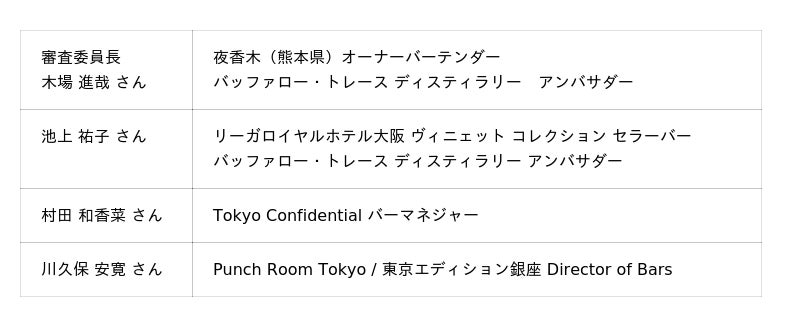 ファイナルでは、バーテンダー界で高い評価を受けるトッププロフェッショナルを審査員として迎え、味わい・創造性・テーマ性を多角的に審査いたします。(順不同)