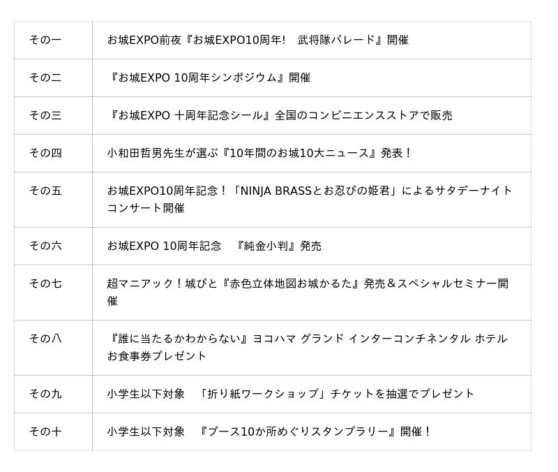 今回は「お城EXPO 十の事」と題して、「お城EXPO10周年」を記念した10の企画を実施します!