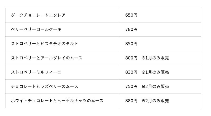 スイーツメニュー / イメージ