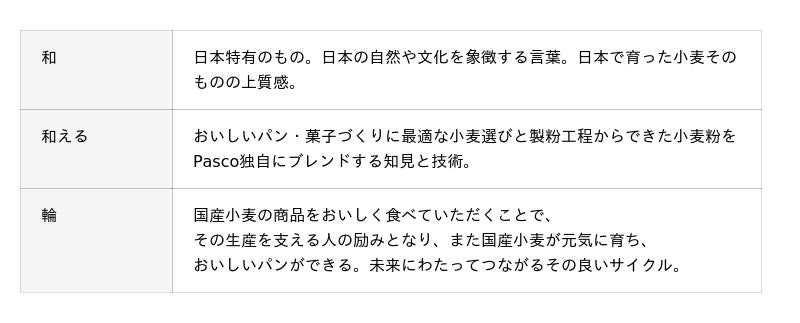 シリーズ全品で国産小麦の小麦粉を100%使用(手粉を除く)しており、パッケージには、Pascoがこれまで培ってきた知見や技術が詰まった国産小麦商品の証である『和小麦』ロゴをデザインしています。