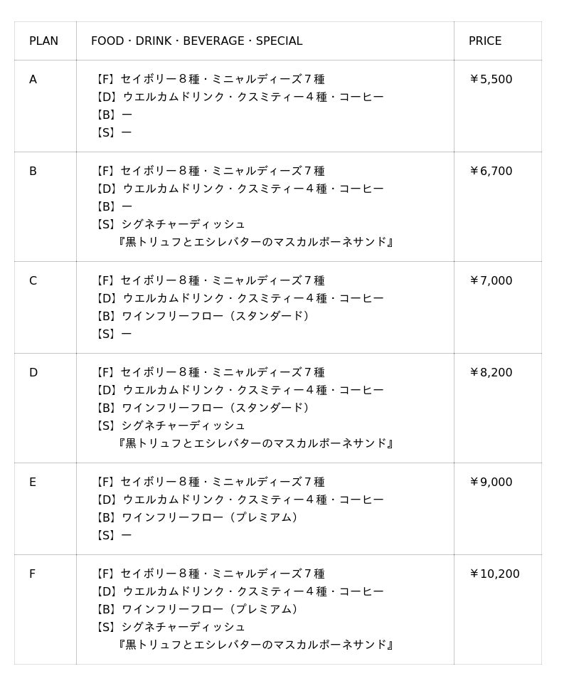 ※ 価格(PRICE)には消費税・サービス料が含まれております。
