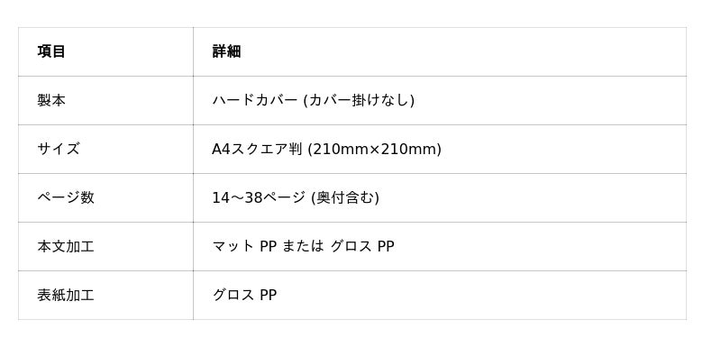 本サービスで出版できる絵本の仕様は以下のとおりです。