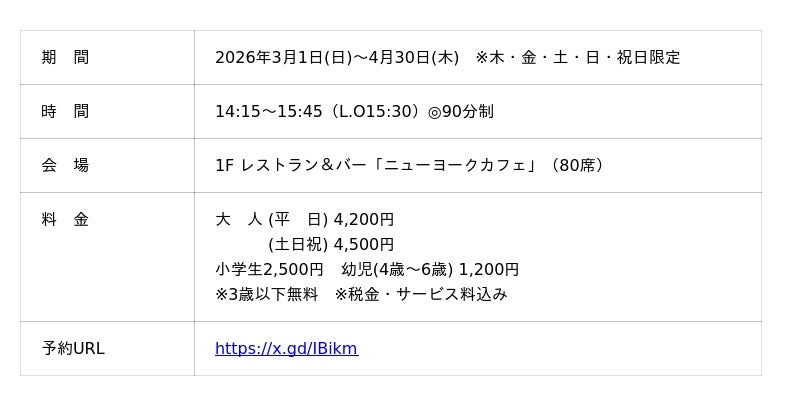 第1弾企画として、1F レストラン&バー「ニューヨークカフェ」にて、苺づくしのスイーツブッフェ『Strawberry Wonderland 2026』を開催します。開催期間は、2026年3月1日(日)から4月30日(木)までの木・金・土・日・祝日限定です。