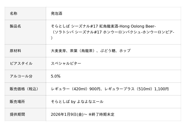 「そらとしば シーズナルビール#17」1/9(金)開栓!台湾最大手クラフトブルワリーとコラボ醸造の数量限定ビールを発売
