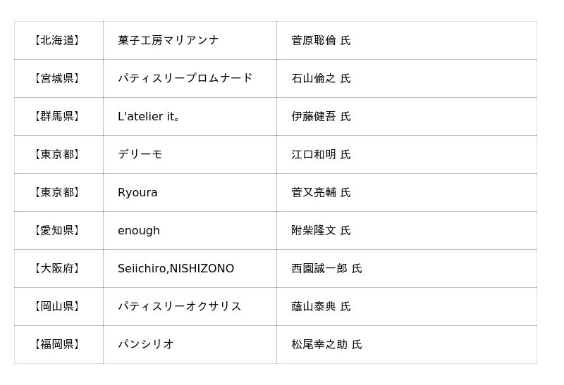 コラボパティシエ一覧