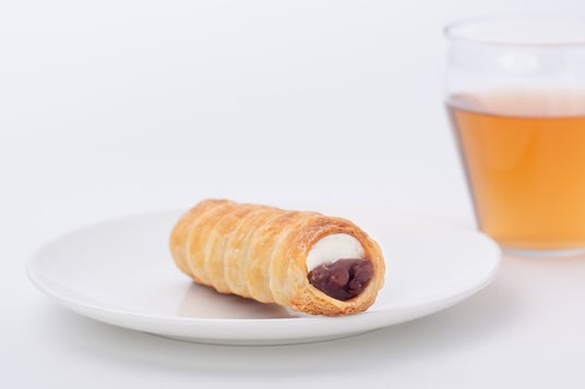 「あずきコルネ和三盆クリーム」とあずき茶のセット(イートイン)。