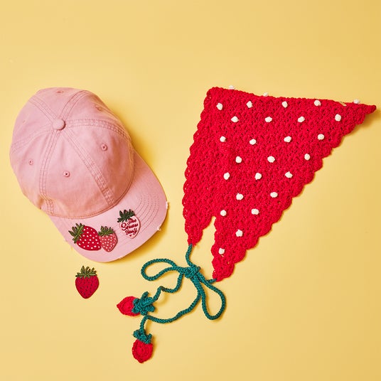 商 品 名︓いちごモチーフのワッペン各種(画像左)、いちごちゃんバブーシュカ(画像右)