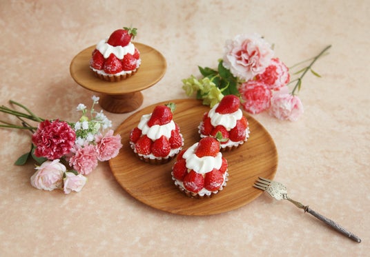 フレッシュないちごを積み上げるように飾りました。いちごの甘酸っぱさとカスタードクリームが好相性です。