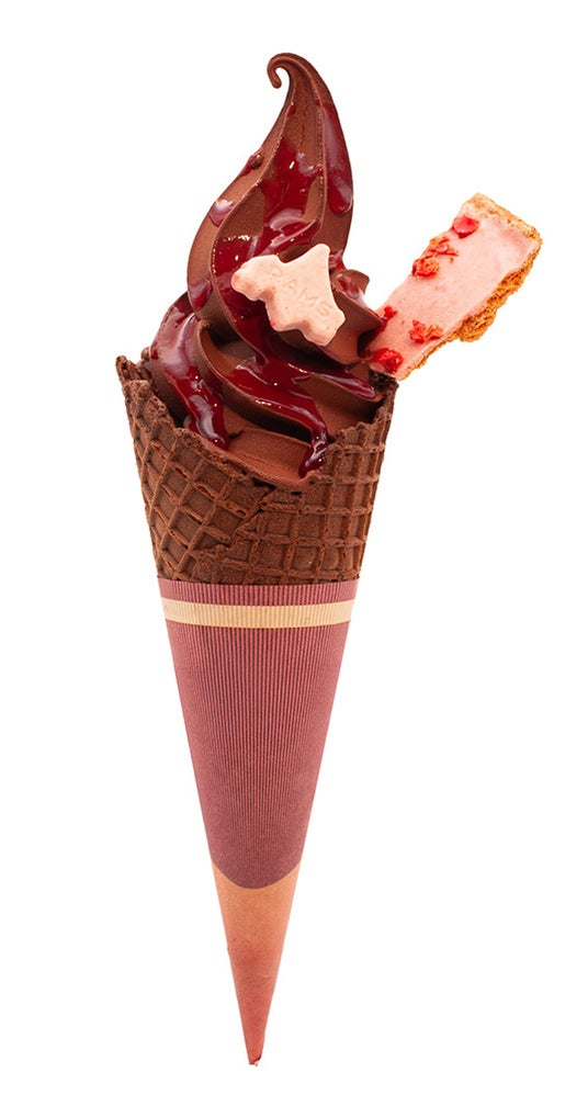 日本人ショコラティエとフランス人デザイナーが手がける旭川発のブランド。こだわりのチョコレートソフトクリームと、通常ボンボンショコラに使用している北海道産ラズベリー×ハスカップのソースがハーモニーを奏でます。
