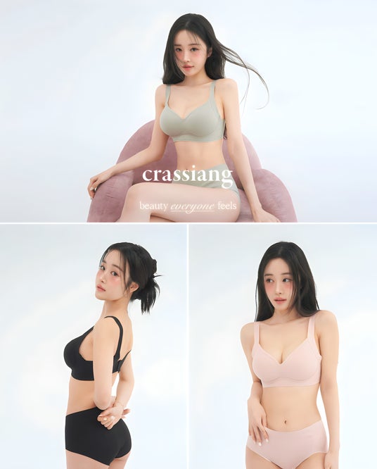 韓国No.1ファッション通販アプリ「ABLY(エイブリー)」で4年連続アンダーウェアカテゴリーランキング1位に輝く「Crassiang」は、10代~30代の若い韓国女性から圧倒的な支持を受けています。「女性の体の多様性とライフスタイルを尊重し、誰もが自分らしく本来の美しさを表現できるようにサポートする」をモットーに、企画から生産までの全過程を厳しく管理しています。。特に「ワイヤレス」の快適さにブランド独自のノウハウを詰め込み、自然なボリュームと完璧なフィット感を実現しています。