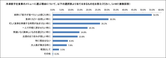 6、 冷凍餃子を食事のメニューに選ぶ理由について、以下の選択肢よりあてはまるものをお答えください。(n=867、複数回答)