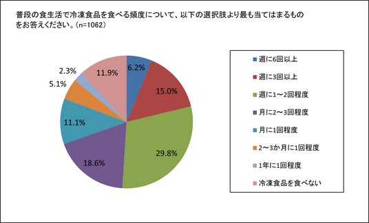 1、普段の食生活の中で冷凍食品を食べる頻度について、以下の選択肢より最も当てはまるものをお答えください。(n=1,062)